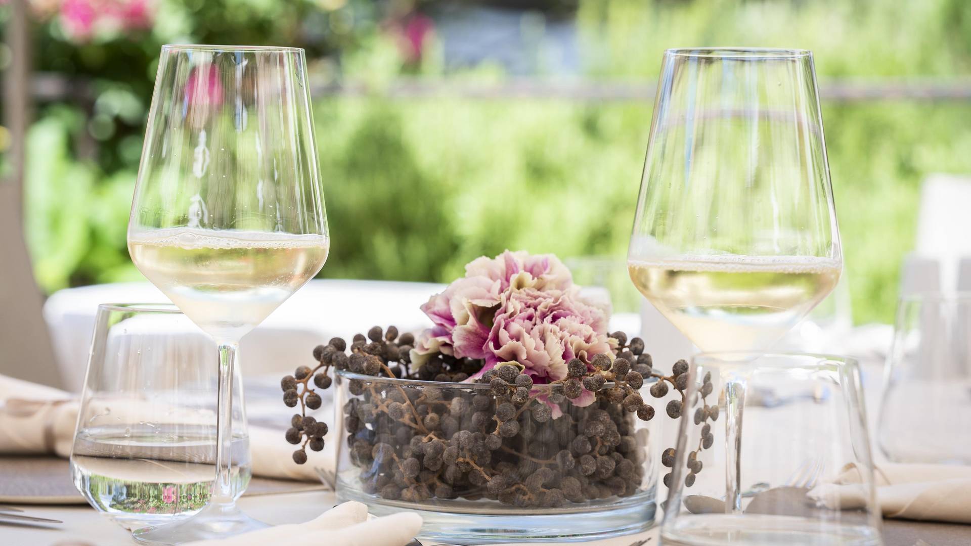 Bei schönem Wetter in einzigartiger Atmosphäre, umrahmt von Basilikum, Estragon, Melisse, Rosmarin, Lorbeer, Oregano und, und, und genießen Sie Ihr abendliches 5-Gänge-Menü und erleben dabei mit allen Sinnen Südtirol. Was um Sie herum wächst und so betörend duftet, findet sich in und auf den Speisen wieder. Selbst die Tische zieren liebevoll arrangiert, Schätze aus Natur und Garten. Wie schön, dass Sie hier die Ruhe haben, all das auch wirklich zu sehen, zu schmecken und zu spüren.