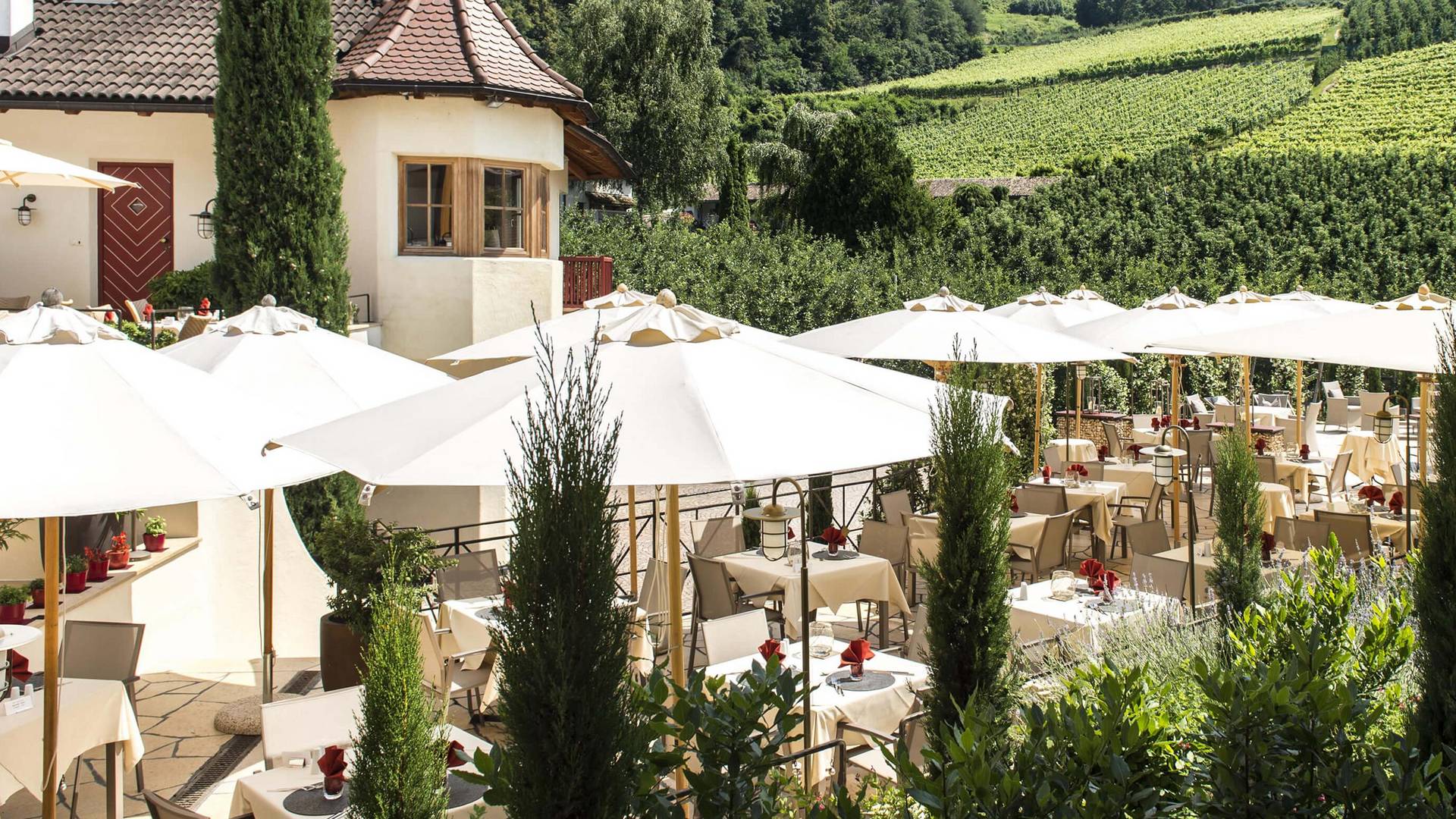 Die Kräuterterrasse in Ihrem Hotel in Südtirols Süden ist einer der absoluten Lieblingsplätze im Haus. Egal ob beim Frühstück, Mittagessen oder einfach zwischendurch. Wer hier sitzt, will nicht mehr weg. Probieren Sie´s aus. Setzen Sie sich zwischen Zitronenbäumchen und Lavendel in unsere bequemen Lounge-Möbel, atmen Sie Kräuterduft und Himmelblau und vergessen Sie beim Blick in schneeweiße Apfelblüten und Weinberge die Zeit.